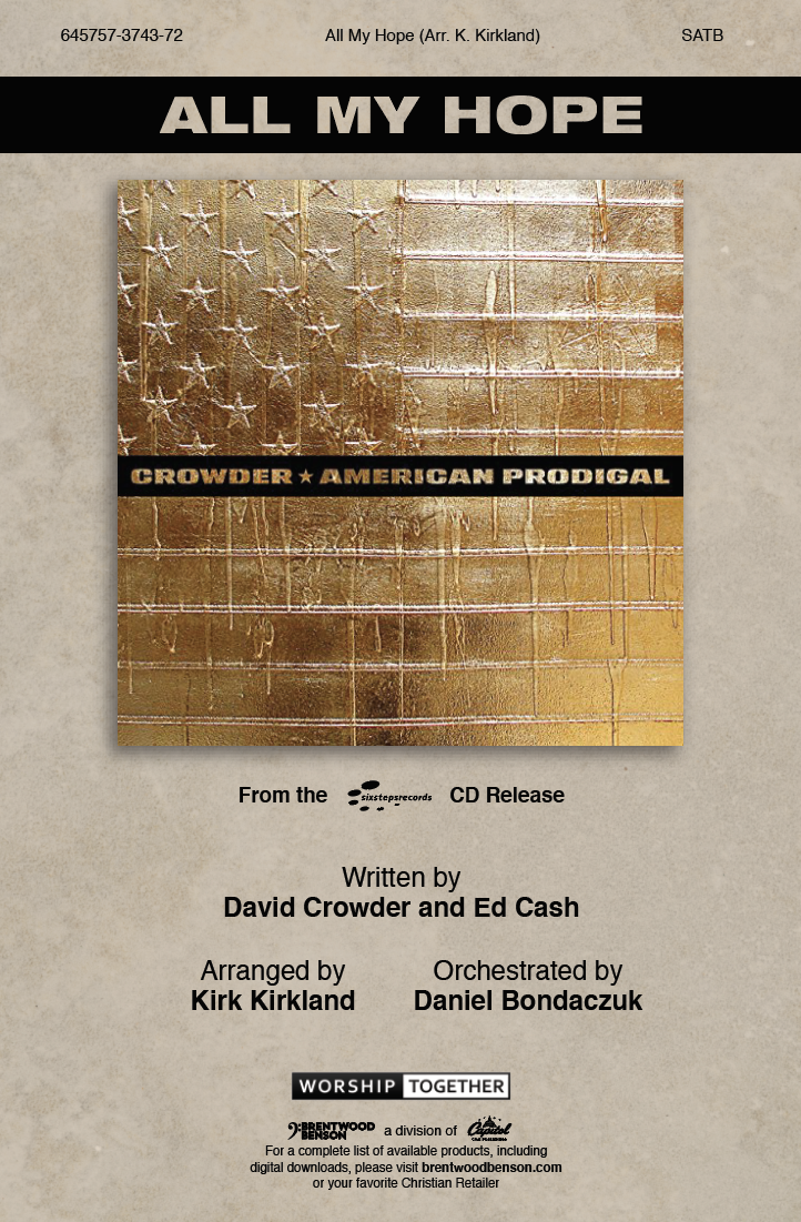 Proven already to be a timeless classic by David Crowder and Ed Cash, “All My Hope” reminds us that all our hope and salvation is found in the cleansing blood of Jesus. In this fun and energetic anthem, arranged by Kirk Kirkland, your congregation will draw near to the Lord as they reflect on the hope that is only found in Jesus.