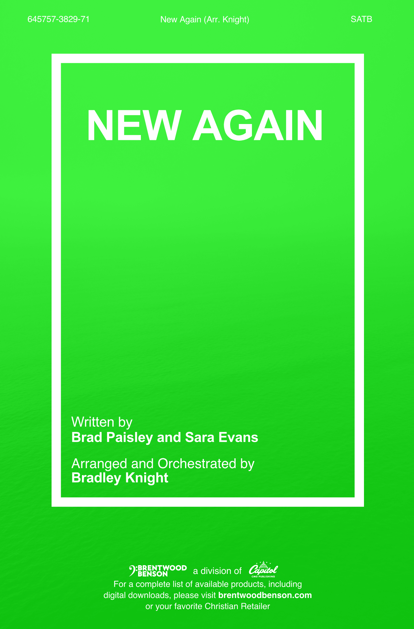 “New Again” is a song that beautifully weaves the narrative of the crucifixion from the perspectives of both Jesus Christ and Mary, His mother. Written by Brad Paisley and Sara Evans, and arranged by Bradley Knight, “New Again” exposes us to the raw human emotions surrounding the sacrifice of Christ and reminds us of the amazing gift of love displayed on the cross — so we could be made new again.