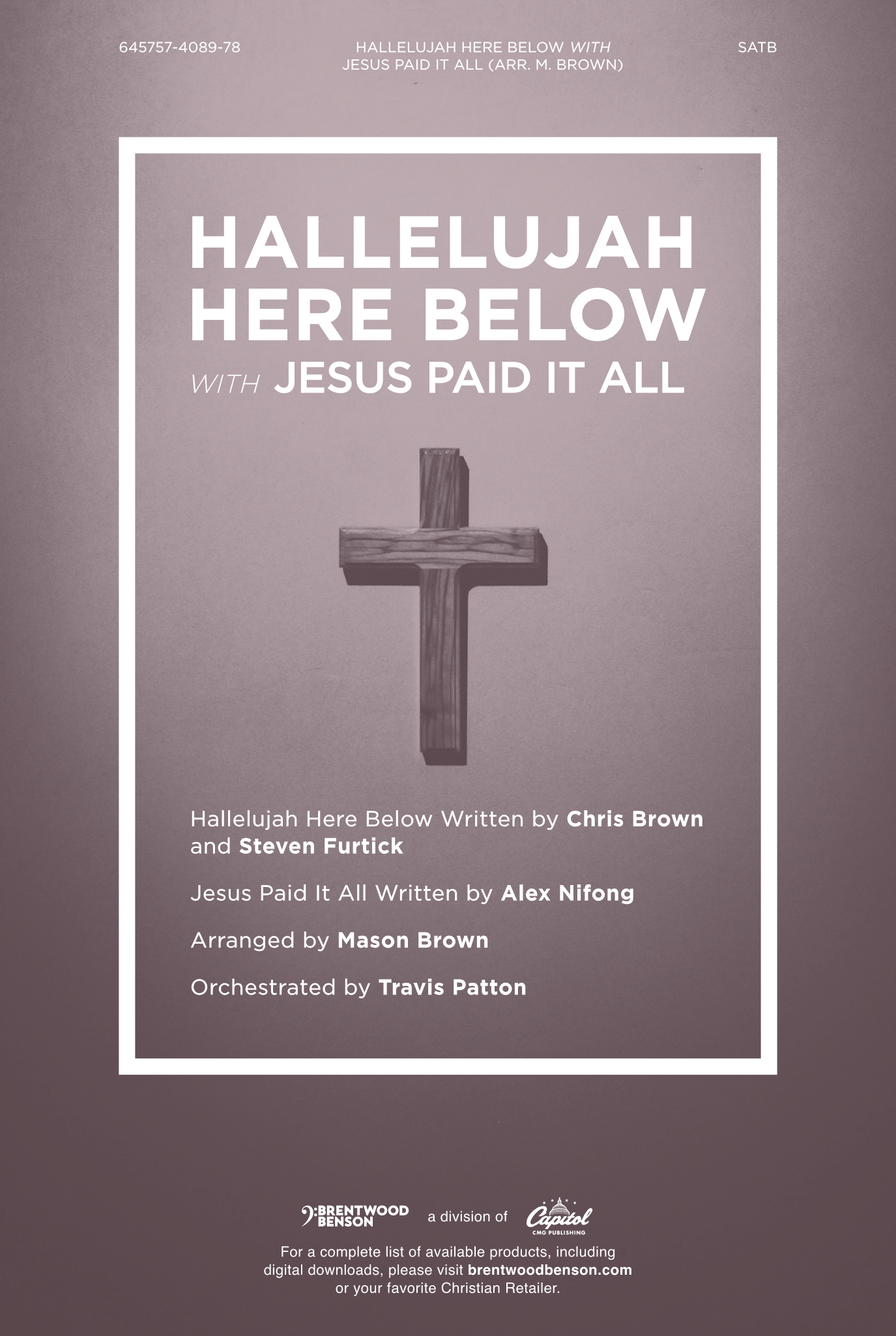 Singing praises to the glory of Jesus is one of the greatest outpourings of worship the church can give. In this majestic arrangement of “Hallelujah Here Below” paired with “Jesus Paid It All,” arranged by Mason Brown, your church will present an offering here on earth to fill the heavens with praise. Available in two versions: an extended anthem version and a standard anthem version.