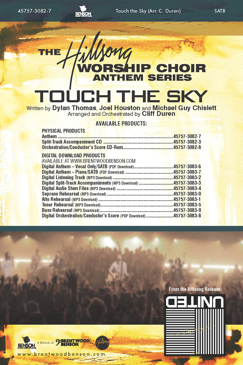 Following Hillsong United’s song “Oceans,” comes the heart-changing anthem “Touch the Sky.” This arrangement from Cliff Duren is perfect for the choir to introduce as a special but is flexible to become the arrangement your church will sing in congregational worship for years.