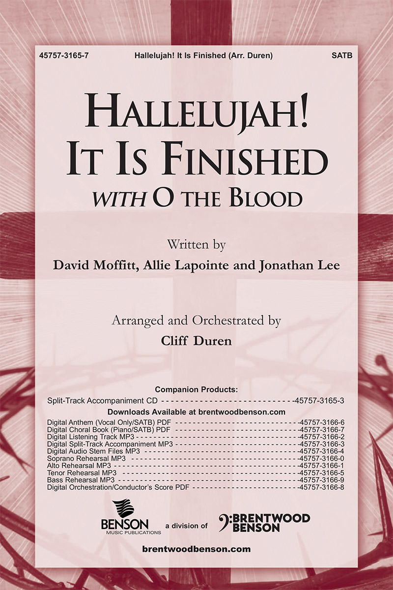 Worship writers David Moffitt, Allie Lapointe, and Jonathan Lee penned the upbeat song, “Hallejuah! It Is Finished.” Cliff Durren joins this exciting Easter celebration song with “O the Blood” to create a powerful closing anthem for your service.