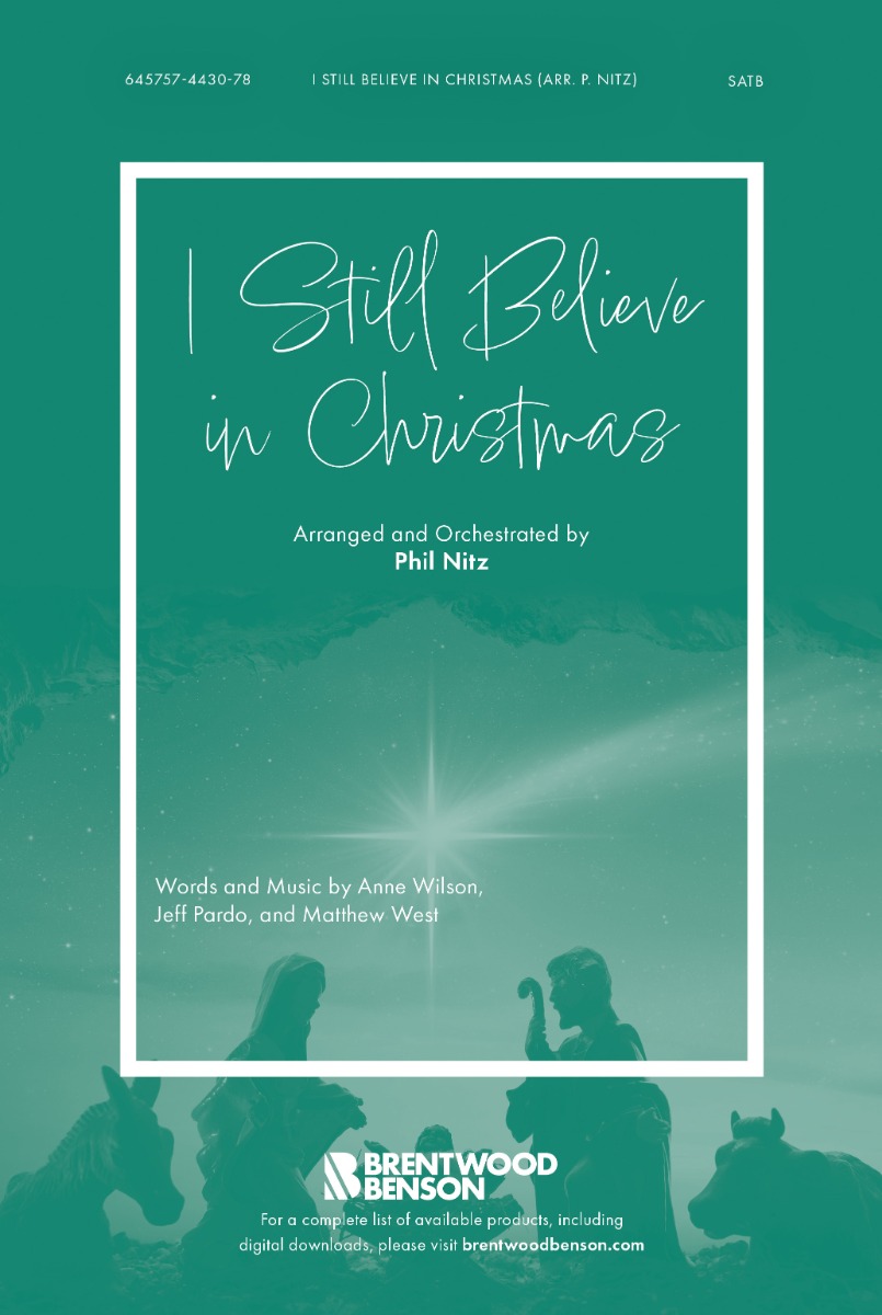 Made popular by Anne Wilson, arranger Phil Nitz brings us, I Still Believe in Christmas, a unique, seasonal choral setting for Soloist and SATB choir. Expressing the hope that arises in the heart of every believer that, even though we live in a world darkened by division, suffering and chaos, as followers of Christ, we still believe in hope, in healing, in peace, and love. And because our Emmanuel is with us, we still believe in Christmas!