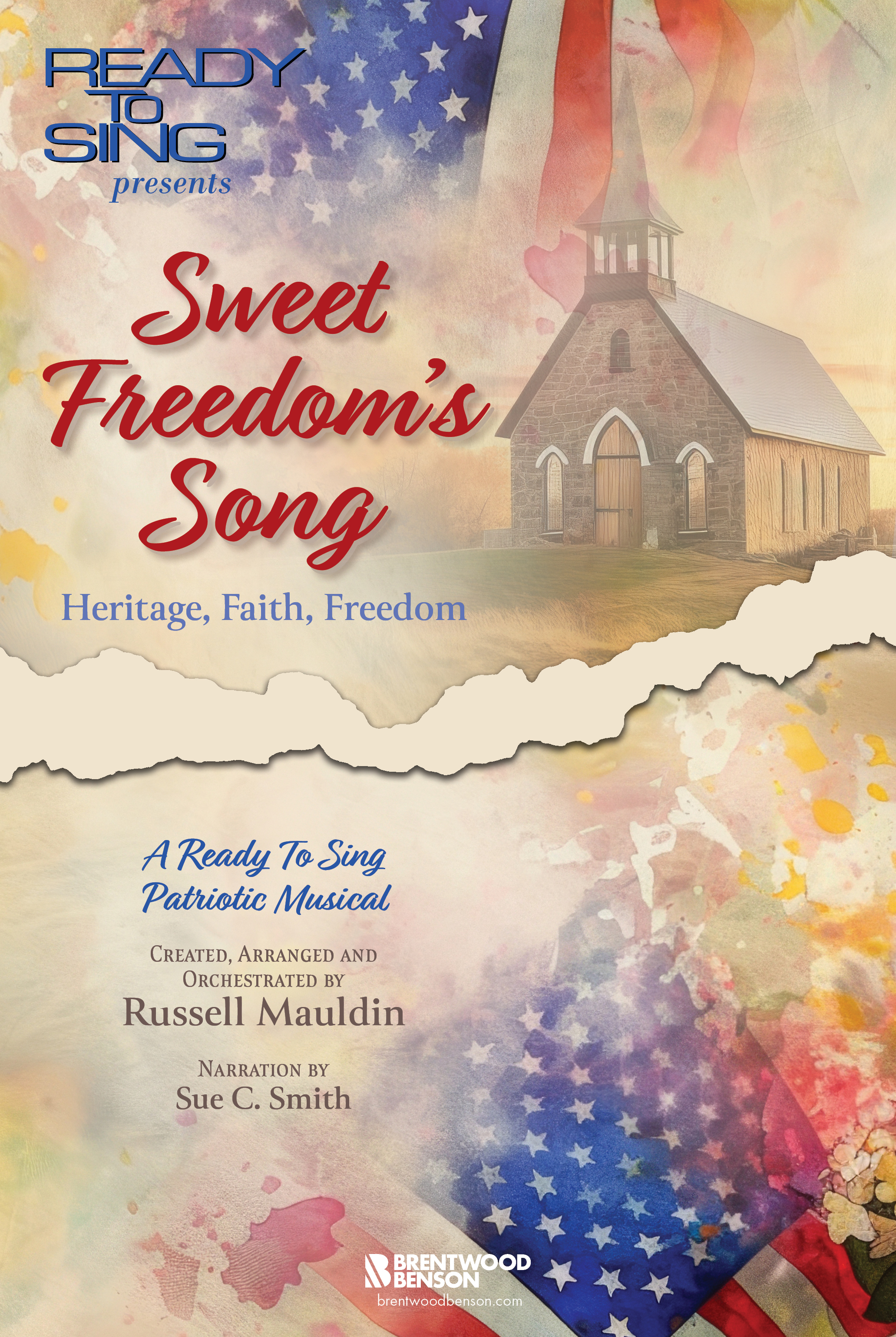 In his first Brentwood Benson, Ready To Sing Patriotic Musical in over a decade, Russell Mauldin has once again beautifully and masterfully arranged this new musical–consisting of 6 songs in 3 sections–into an epic tribute to the Heritage, Faith, and Freedom with which God has so richly blessed this great land.