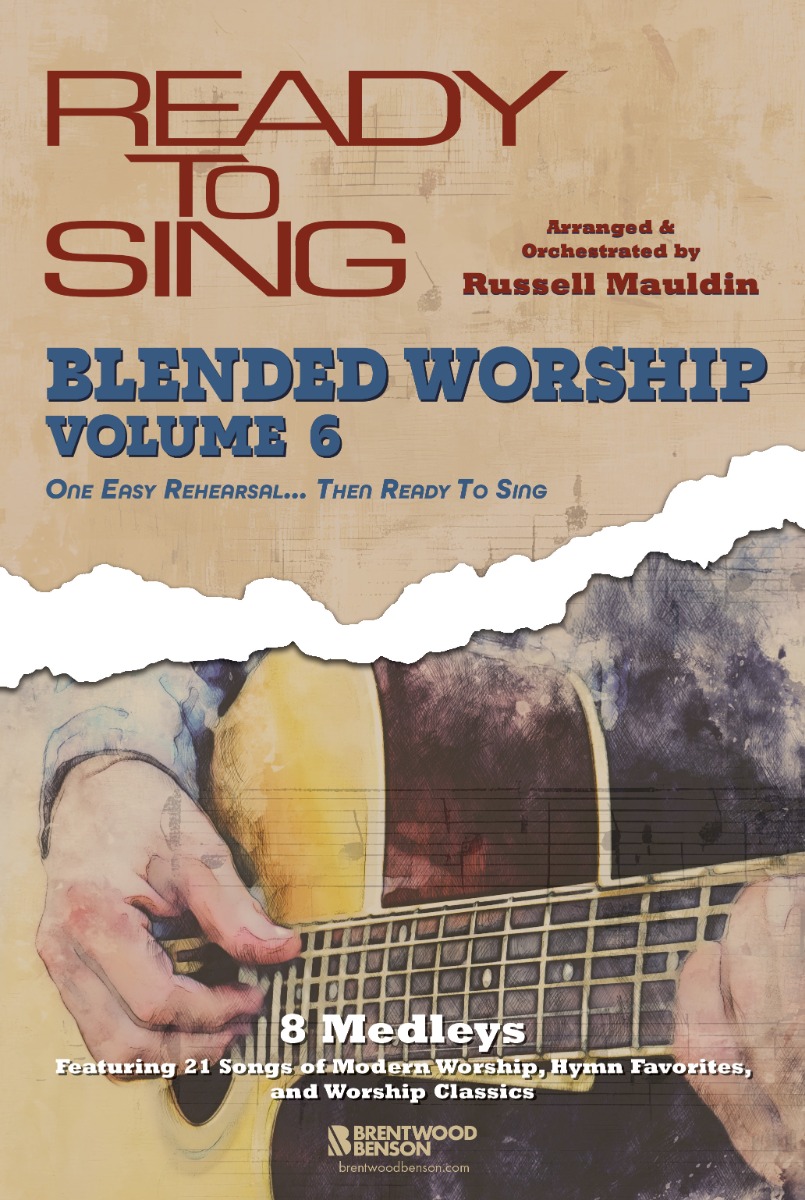 The highly praised Ready To Sing Blended Worship Series from celebrated arranger, Russell Mauldin, returns with Ready To Sing Blended Worship Volume 6. Continuing the mission of Volumes 1-5 in both style and singability, Blended Worship Volume 6 blends today’s most popular praise and worship songs with timeless hymns and beloved gospel songs of the church.