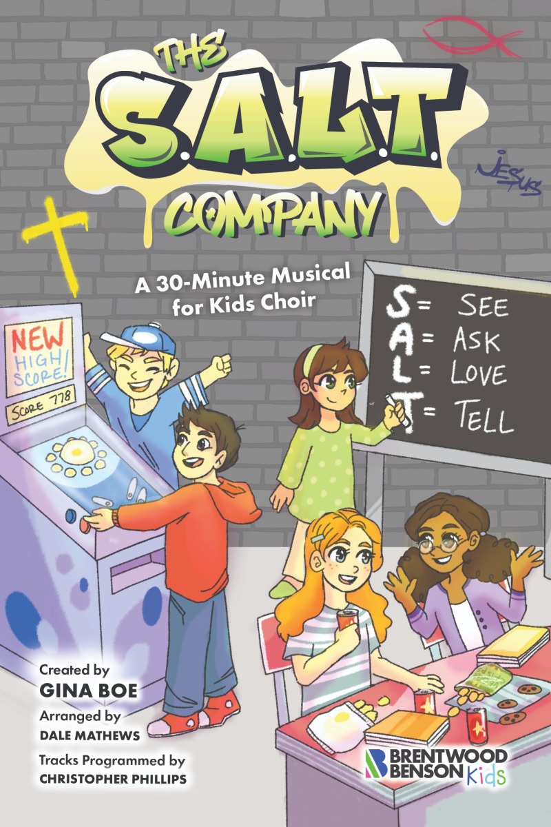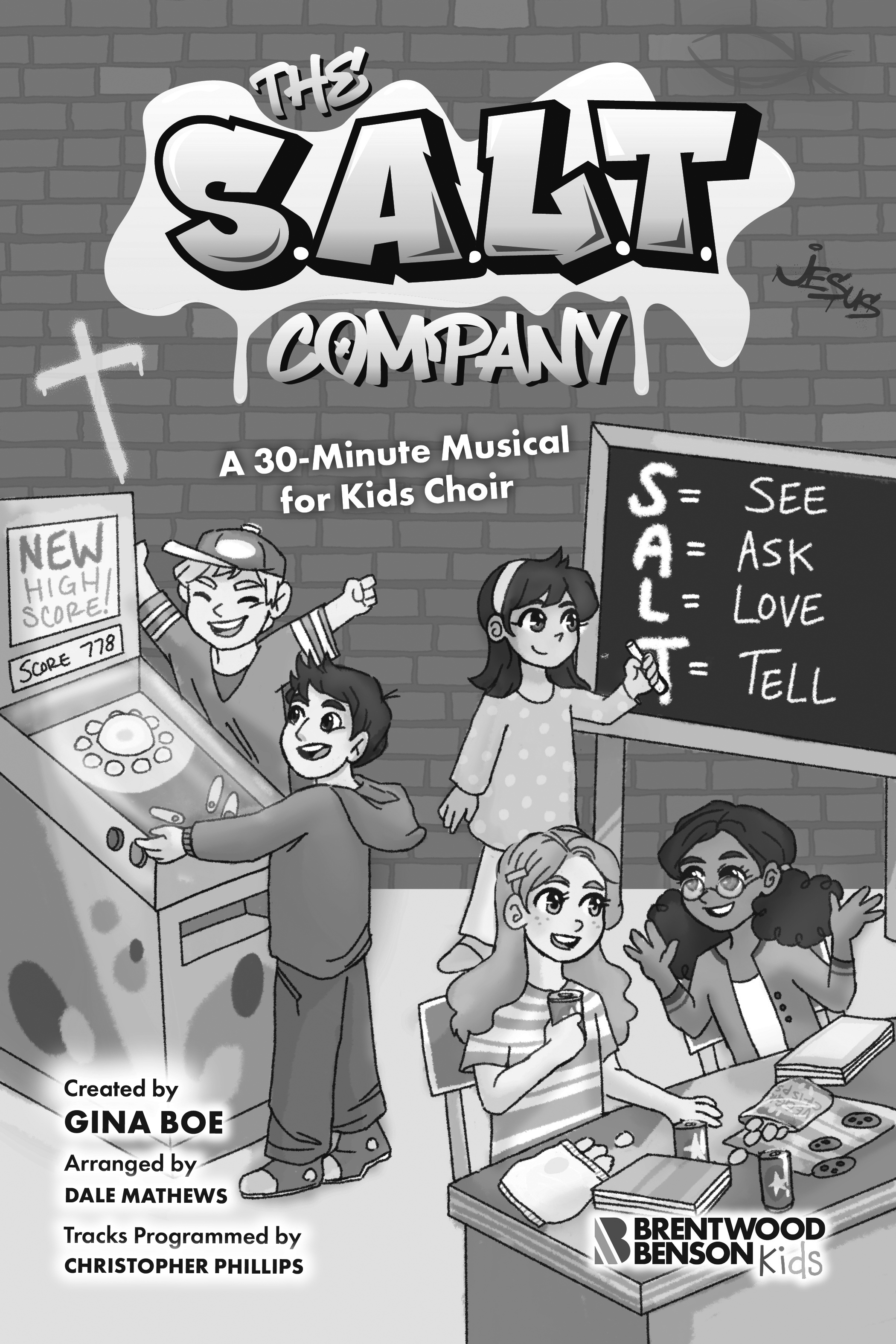 Welcome! Let me tell you about some great kids and their very special club… The S.A.L.T. Company! Their mission? To bring life and action to scripture that teaches us as believers that we are the salt of the earth. In this new musical, The S.A.L.T. Company, from Brentwood Benson Kids and creator, Gina Boe, you’ll see the kids in your children’s music ministry come alive with the Truth of God’s Word as they learn what it means to be a member of The S.A.L.T. Company and how to go about being the salt of the earth, just like the Bible tells us. Join S.A.L.T. Company club members Kalli, Cade, Nate, Grace, and their new friend Julia, as they sing and tell about being salt to the world, “making everywhere we go a better place to be” and “living out the love of God, giving everything we’ve got, just like Jesus did for you and me…” Fun, catchy, upbeat songs, with a delightful, scripture-centric, and humorous script make The S.A.L.T. Company the perfect choice for your next Kids Choir musical!